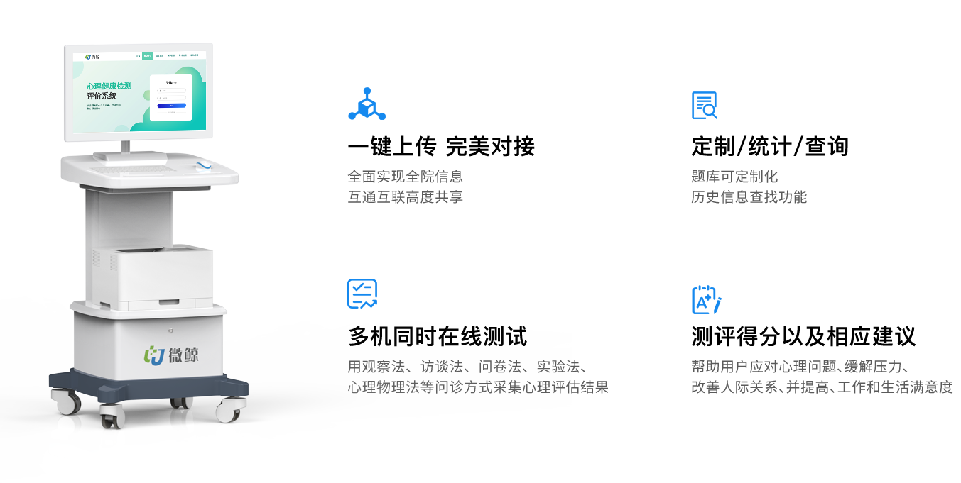 · 自助心理测评,集成评估、预警、干预和管理等多功能